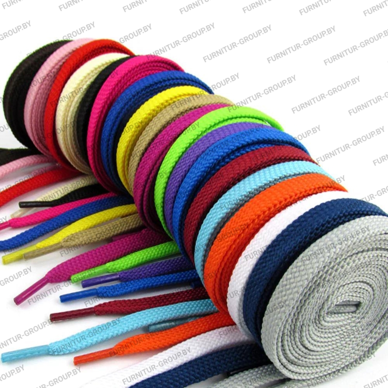 Our company produces and sells shoe laces made of high quality polyester thread. The automatic line for the lacing of the laces with a film of cellulose acetate has allowed us to increase the speed of production and the quality of sealing tips.